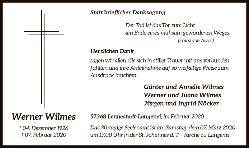 Hier finden Sie alle Traueranzeigen aus der Zeitung, die bisher für Werner Wilmes erschienen sind. Weitere Traueranzeigen, die in der Zeitung erscheinen, werden hier ebenfalls aufgelistet