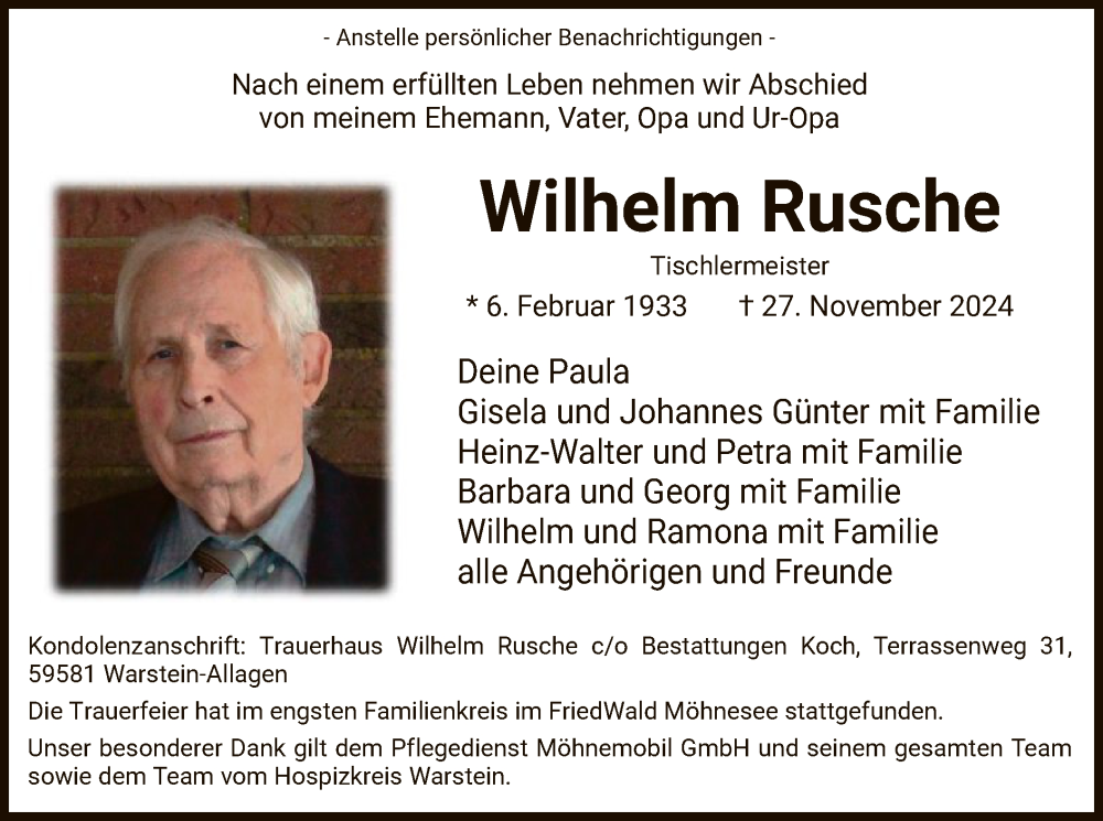 Hier finden Sie alle Traueranzeigen aus der Zeitung, die bisher für Wilhelm Rusche erschienen sind. Weitere Traueranzeigen, die in der Zeitung erscheinen, werden hier ebenfalls aufgelistet